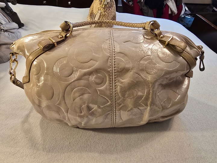 Shimmer Zipper Pockets Bag Satchel Leather Shiny Gold Classi Classy Gift Holiday Gifts Present Classic Collectible Coach Gate Horse Carriage